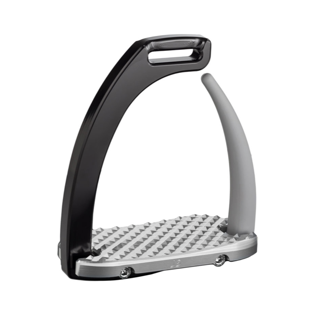 \nThe Air Safety stirrup is the perfect combination between safety, unique design and comfort. Its new structure, equipped with an external arch comprising of flexible material, JS AIR Junior allows for easy exit of the foot in case of a fall/emergency dismount etc. Still guaranteeing perfect lateral support of the foot thanks to a truncated cone design. It automatically returns to the initial position without causing structural changes. The anatomical pad also provides more stability and with its ergonomic shape helps to maintain the correct posture of the body whilst in the saddle. \nA prefect stirrup to guide our smaller/young riders into the correct foot/lower leg, heal down position. The ultimate edge in safety. Like no other, this stirrup is highly engineered and realised in only top quality materials. Designed to last !
