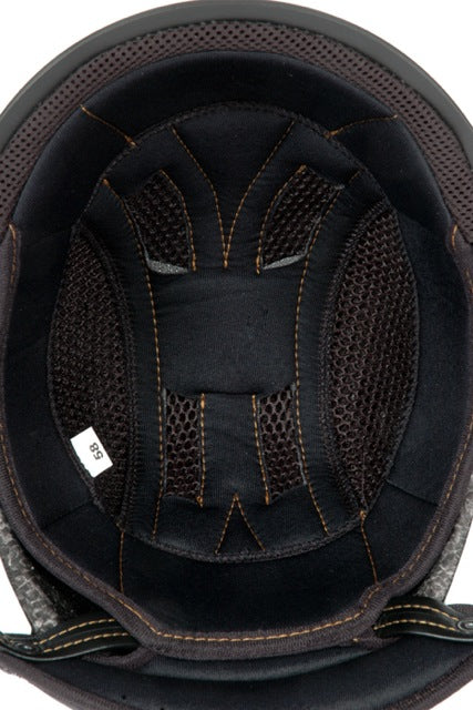 JS Icona Helmets have a removable inner pad that is fitted easily to helmet to allow for washing. The straps are a weather protected patent leather strap with quick release clasp.