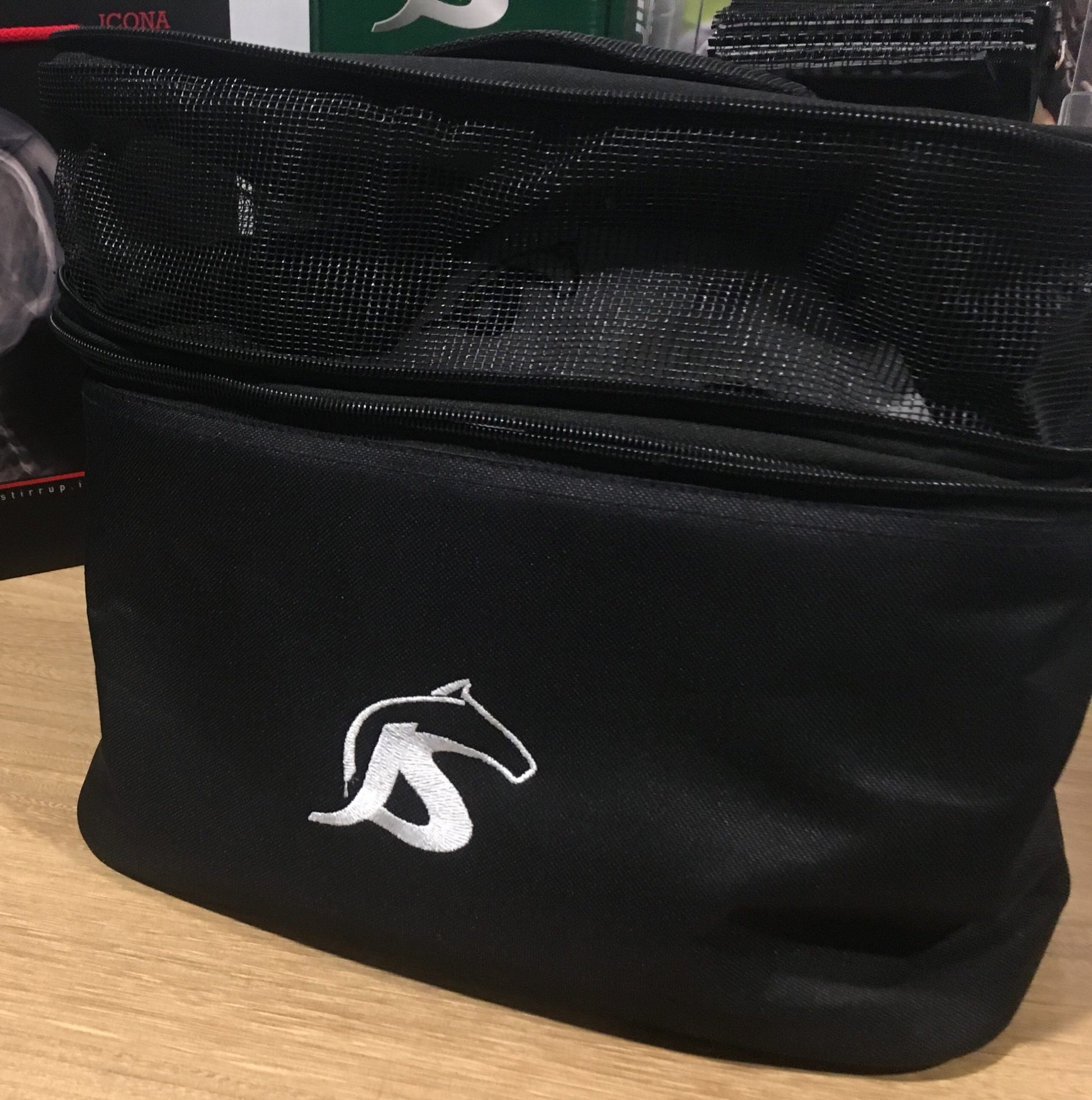Our JS Helmet Bags are made in durable heavy woven material. Featuring inner pockets for hair ties, brush, hairspray and accessory storage etc. Bag has a seperate ventilation section that can be unzipped (to allow for sweaty helmet/insert breathability).