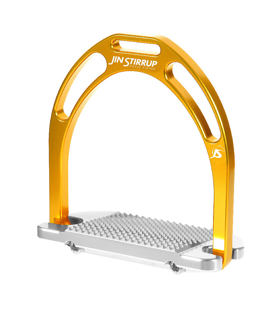 \nJin Stirrups are obtained by certified sky-high quality aluminium, worked with sophisticated CNC Machinery. Colouring obtained by anodizing process to give the product an effective protection from corrosion and lastly, also offering the possibility of choosing a colour you love ! A beautiful everyday riding, dress stirrup, dressage stirrup you will love.