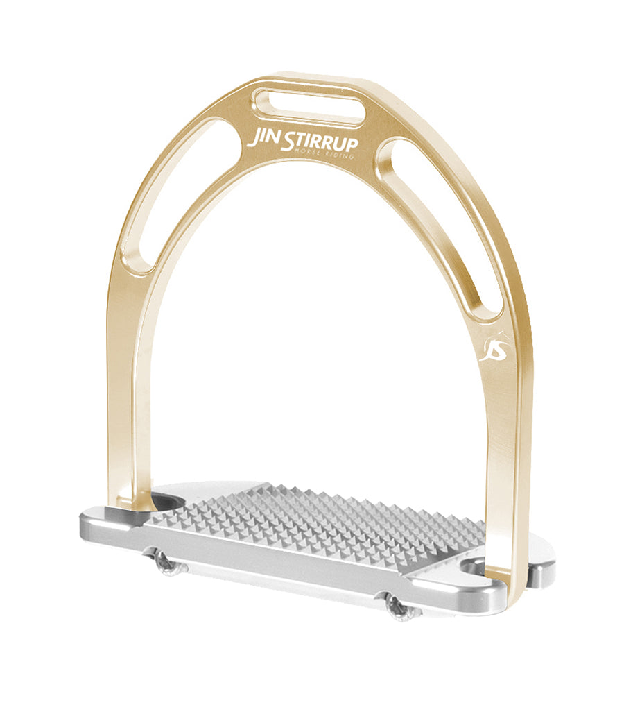 \nJin Stirrups are obtained by certified sky-high quality aluminium, worked with sophisticated CNC Machinery. Colouring obtained by anodizing process to give the product an effective protection from corrosion and lastly, also offering the possibility of choosing a colour you love ! A beautiful everyday riding, dress stirrup, dressage stirrup you will love.
